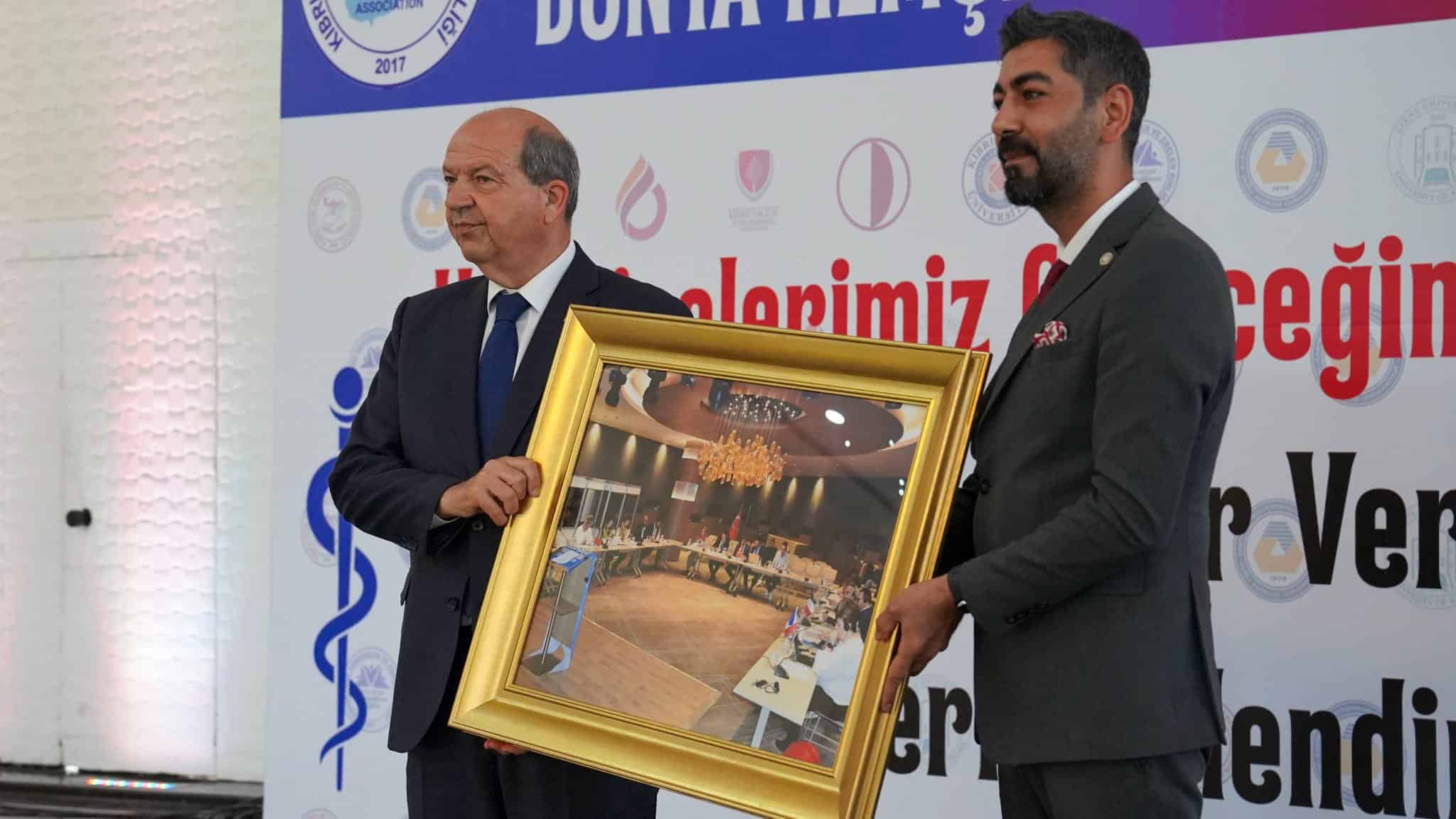 Tören kapsamında, HEP-SEN Genel Başkanı Yunus Şimşek tarafından Cumhurbaşkanı Ersin Tatar’a hediye takdim edildi. Hediye içeriğinde, HEP-SEN’in 2024 yılında 30 Nisan’da İstanbul’da düzenlediği Uluslararası Hemşirelik Zirvesi’ne katılan ABD, İtalya, Fransa, İspanya, Portekiz ve Kuzey Kıbrıs Türk Cumhuriyeti gibi ülkelerin bayrakları ve temsil heyetlerinin toplantı yaptığı masa yer aldı.