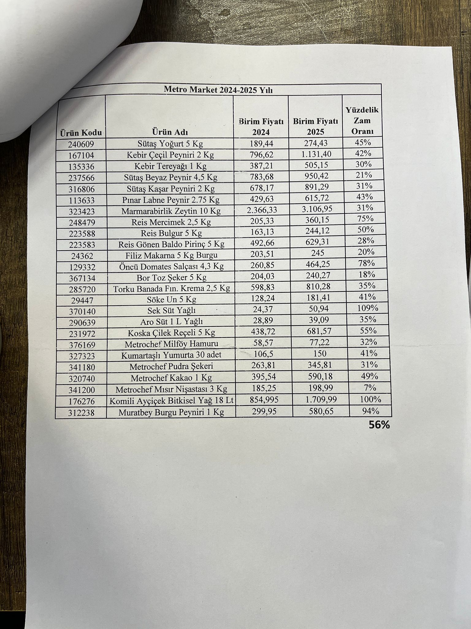 Hastane yönetiminin, zammı gerekçelendirmek için hazırladığı maliyet raporu ve gıda fiyatları listesi de tartışmanın bir diğer boyutu. Yönetim, Metro Market fiyatlarını baz alarak 2024-2025 yılları arasındaki gıda enflasyonunu masaya koydu.