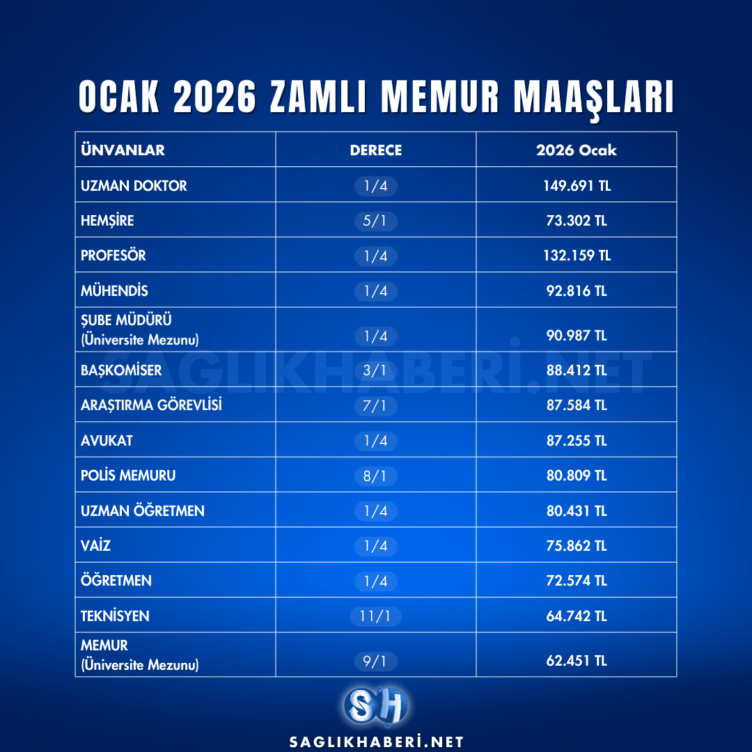 | ÜNVANLAR | DERECE | 2026 Ocak (TL) |