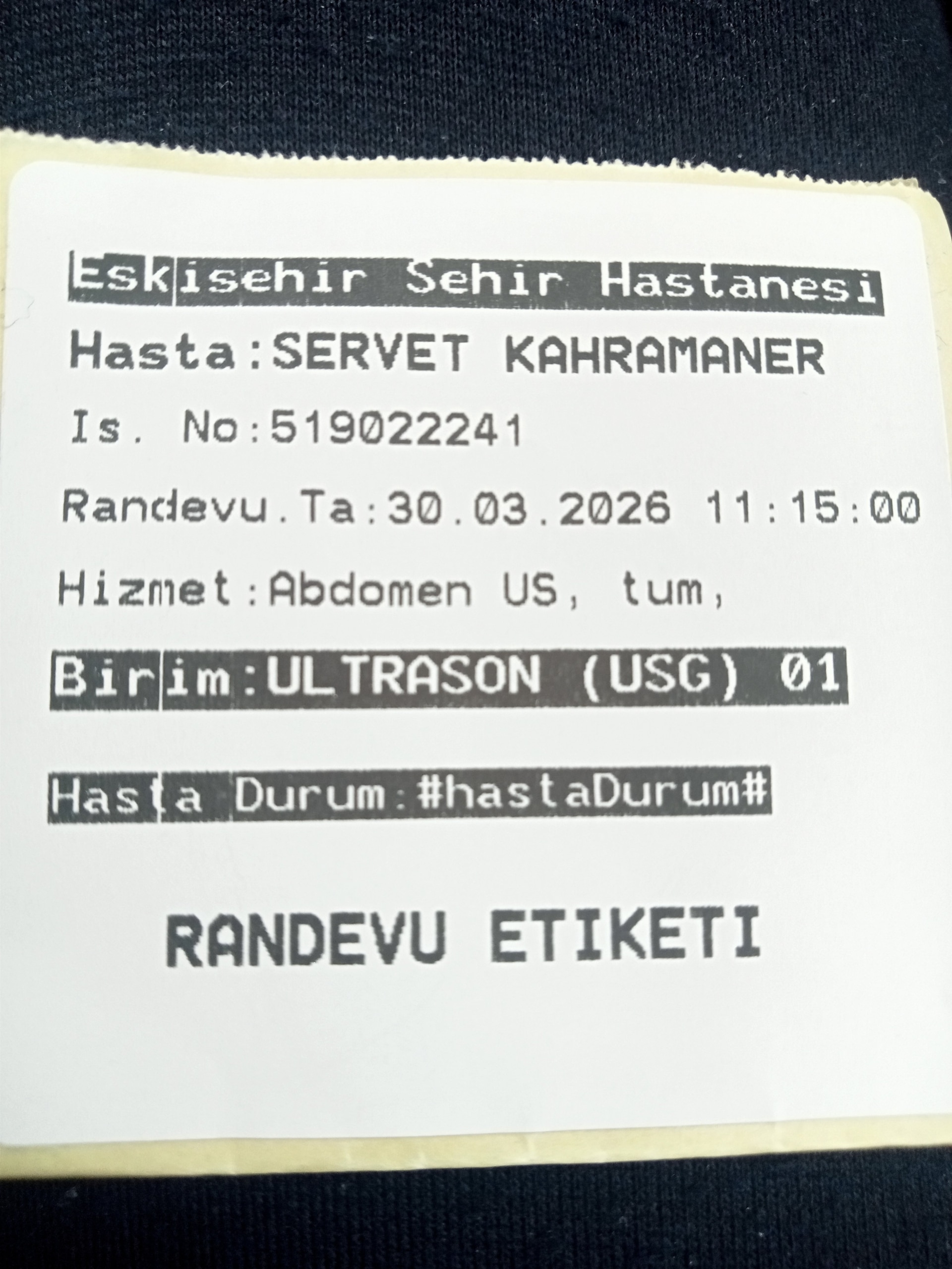 Karın ağrısı şikayetiyle gidiyorsunuz, 2 ay sonrasına ultrason randevusu alabiliyorsunuz.